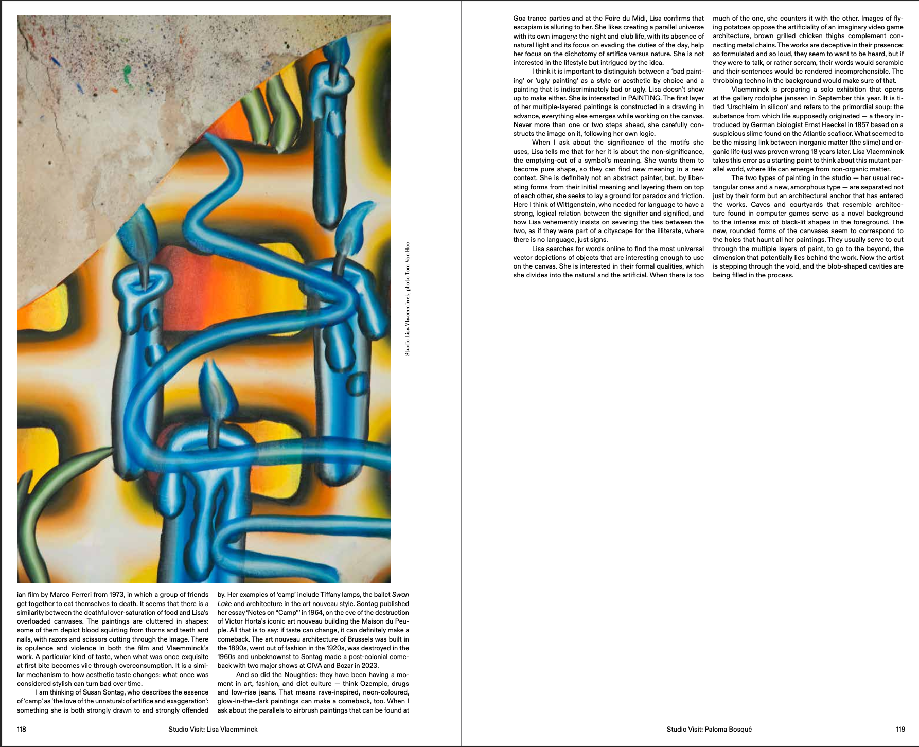 We’re back with two local studio visits in this issue. Artist and writer Michaela Schweighofer dropped by Lisa Vlaemminck’s studio in Molenbeek (and found ‘a lot’ of painting). Curator Laila Melchior had an enriching conversation with her compatriot, the Brazilian artist Paloma Bosquê (after being greeted with a typical Brazilian cafézinho). Complementing the writers’ contributions, both artists’ studios were wonderfully caught on camera by Tom Van Hee and Dries Segers.